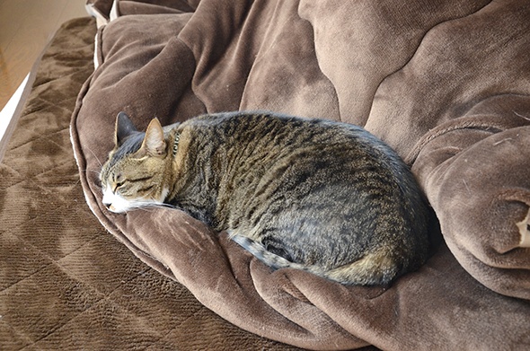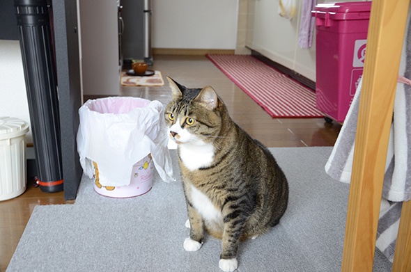 掃除機が怖くて隠れてた半蔵が出てきました