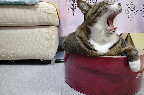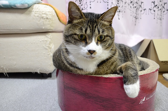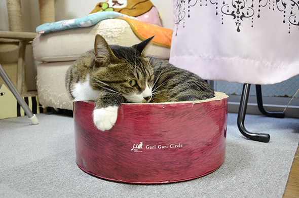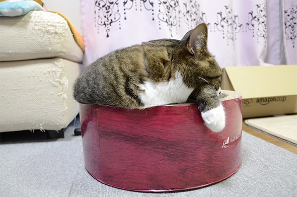 半蔵が入るには少し小さいのでいつもは爪とぎとして利用している