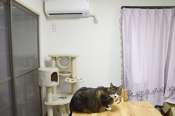 エアコンの風でぬくぬく中の半蔵です