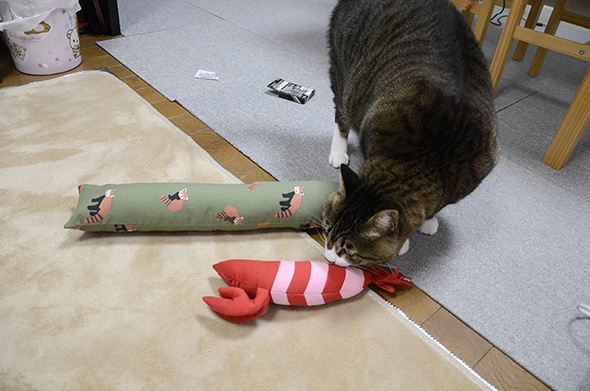 なんと、またたびのニオイを嗅ぎつけて半蔵が起きてきました(゚д゚)!