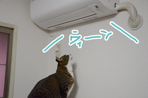 時々、エアコンの風が出てくる所を叩くので見張っていたけど