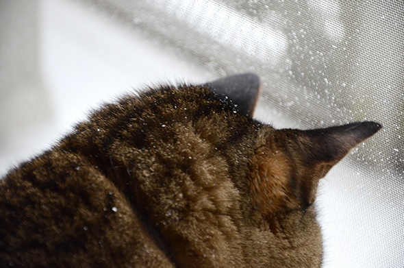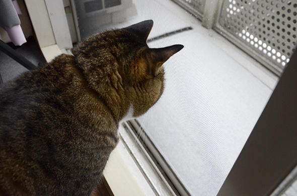 あっ網戸をすり抜けた雪がちょっと積もってる(* ´艸`)クスクス