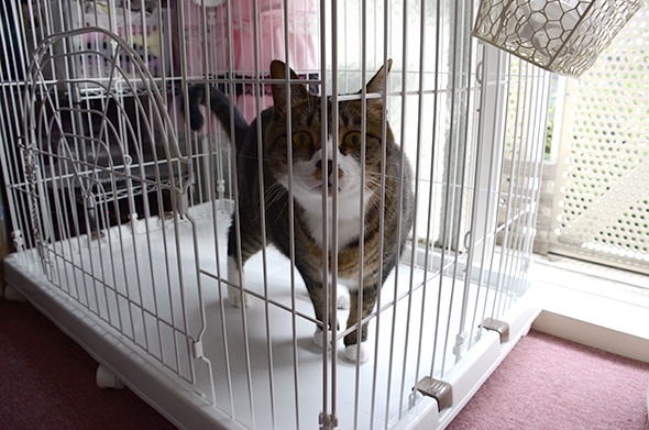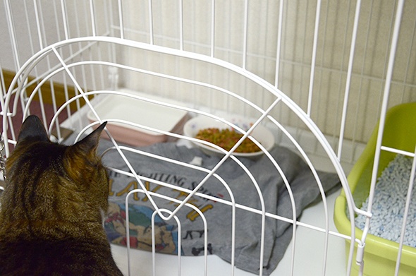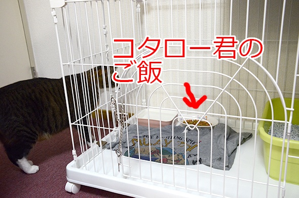 お留守番の間は念の為にコタロー君にはケージに入っていてもらいました