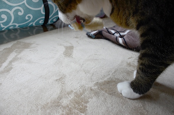 床に飛び散ったマタタビ舐めてるよ(´;ω;`)