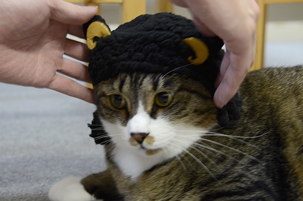 猫が被る用の可愛い被り物を見つけました(´∀`)