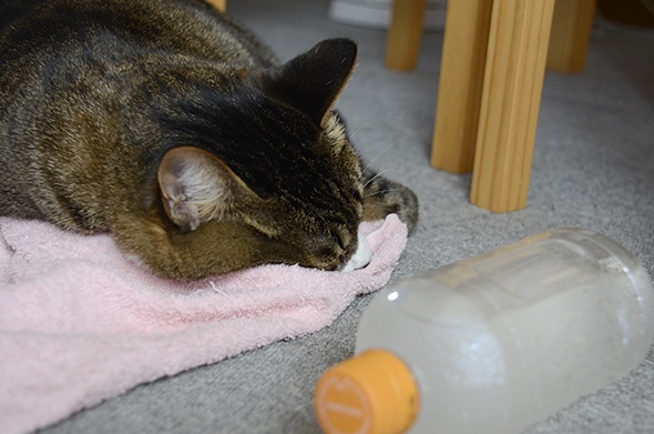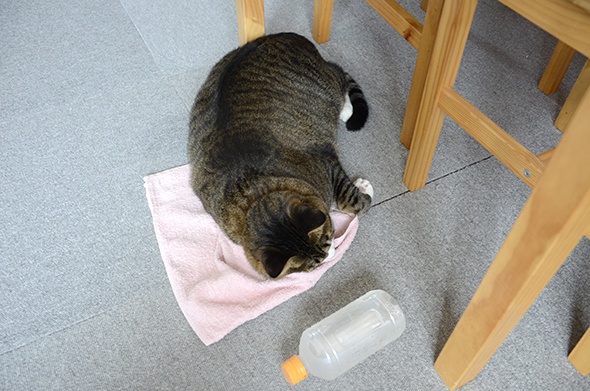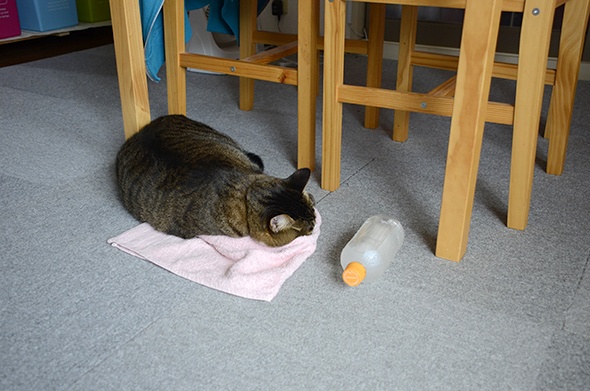 あ!半蔵がドリンクバーをどかしてタオルで寝てる!