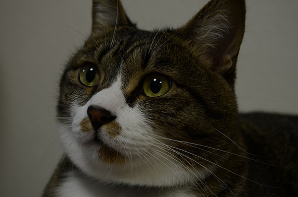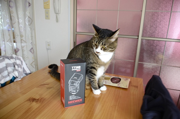 猫は目がとっても敏感なので、ライトの光は天井に向けて撮ります