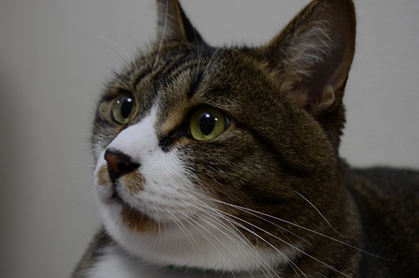 猫は目がとっても敏感なので、ライトの光は天井に向けて撮ります
