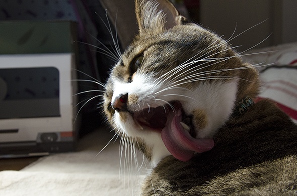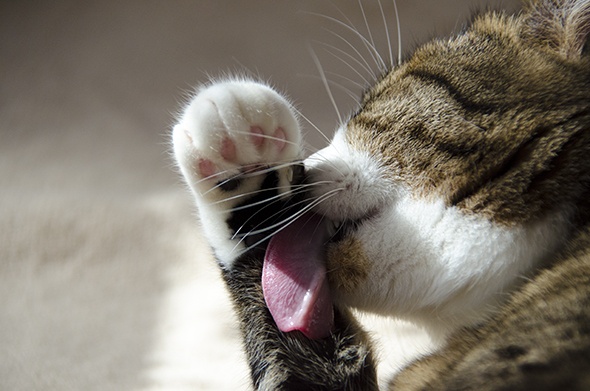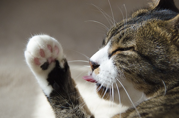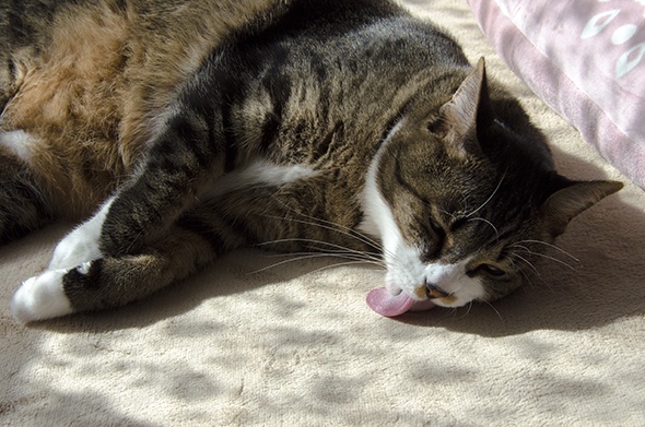 あ、寝る前の毛繕いが始まりました(ノ∀`)