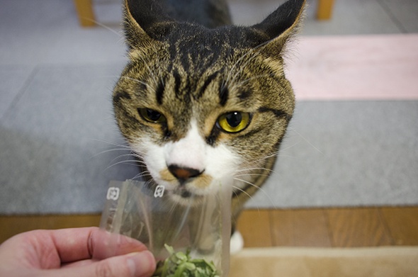 草のニオイが漏れてるのか、半蔵がすっごいクンクンしてます