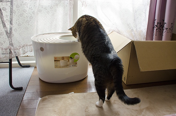 前回届いたトイレ用の砂が届いたので、早速入れて置いてみるテスト