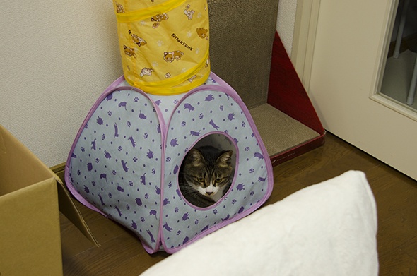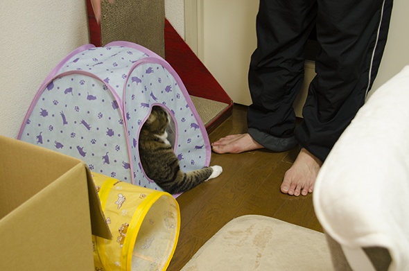 春夏しか入らないテントに入っている半蔵です
