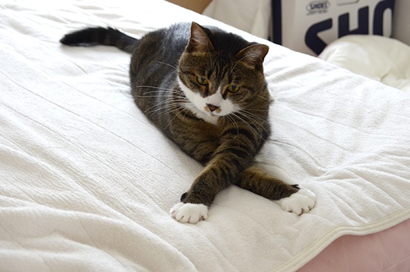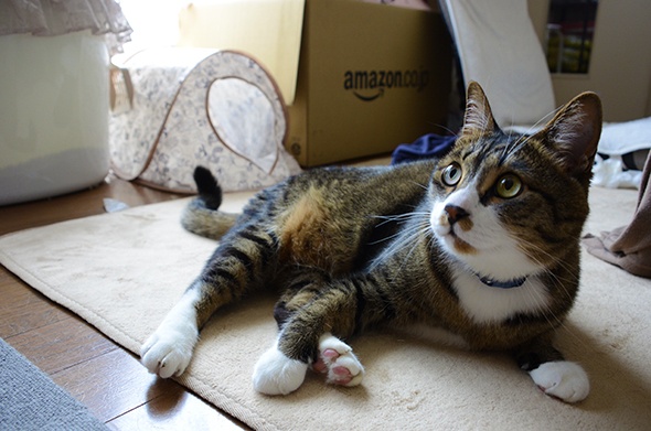昨日の夜中、雷がすごくて怖かった半蔵(;´Д`)