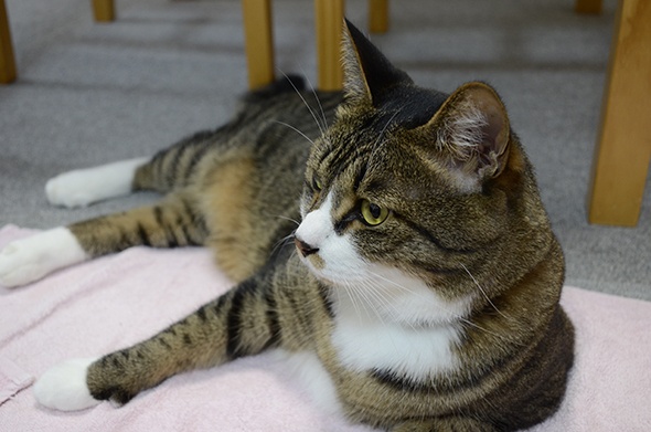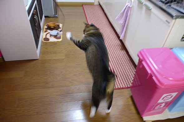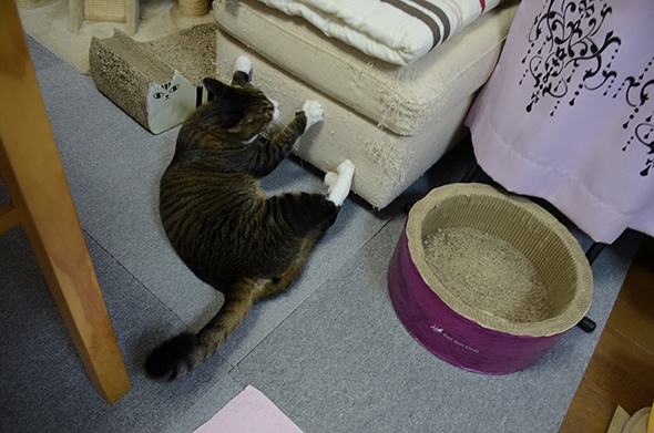 遊んだ後は、寝っ転がって爪とぎ(家具)