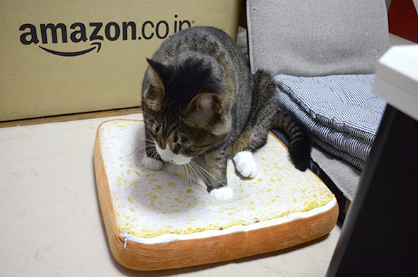 ちょっと前に猫飼いの間で流行ったパンのクッションです