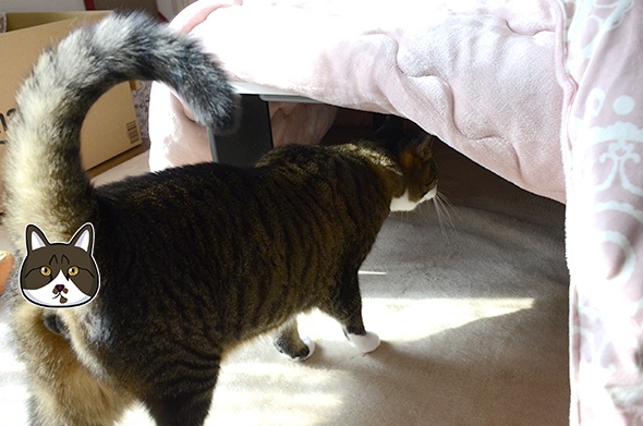 毎年言ってますが、このこたつはフラットヒーターで足元広・・・あっ