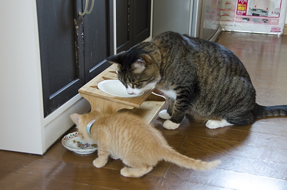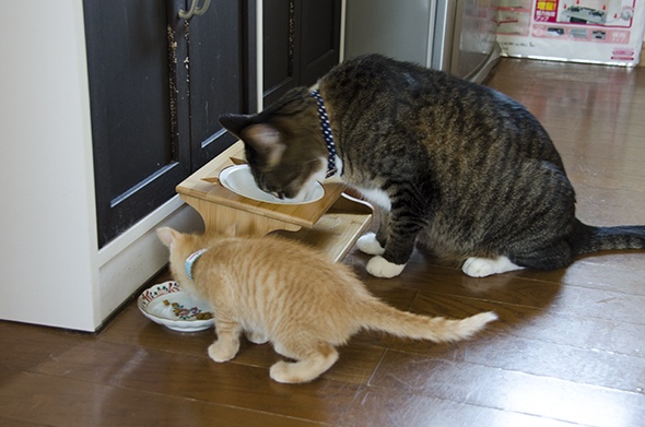 3,4日で慣れたみたいで、並んでごはんを食べるようになりました(´∀`)