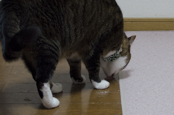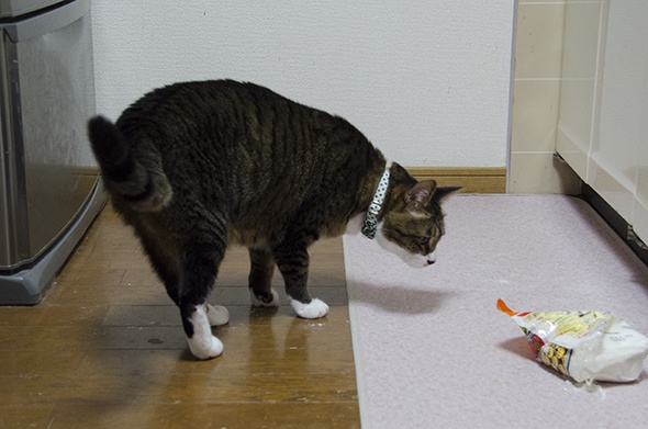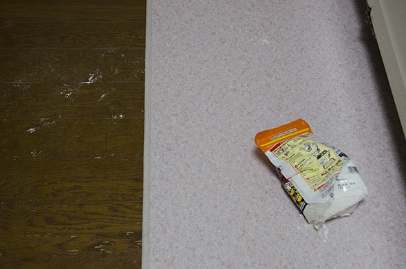 戸棚ストッパーを破壊し、たこ焼き粉で遊んだ奴がおる