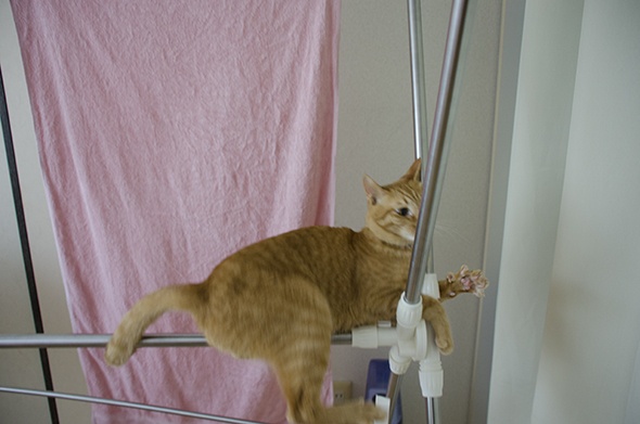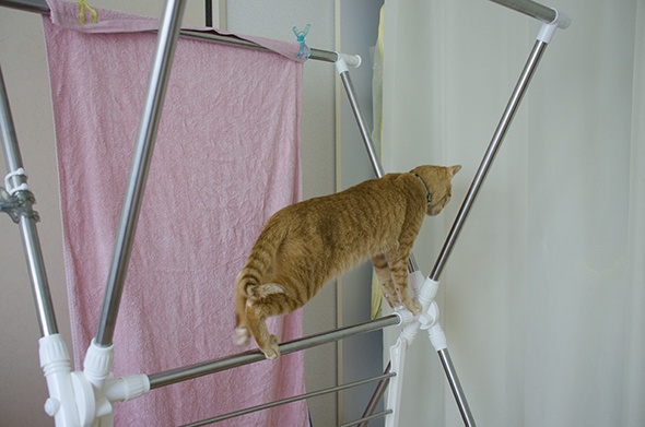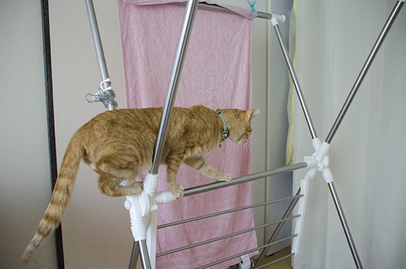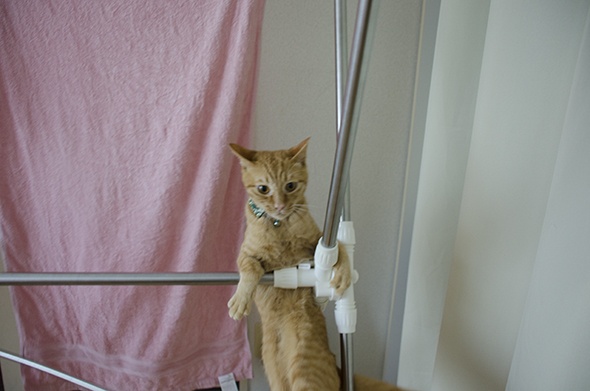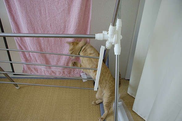 ちょっと!画像ではわかりにくいけど、部屋干しするやつが破壊されてる!