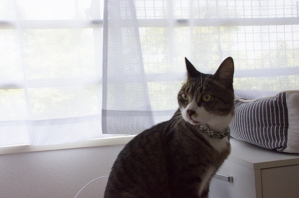 後日レースカーテン買い替えたけど、ちょっと短かった;