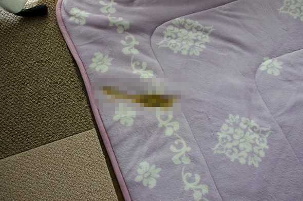 ぎゃー!誰か毛玉をこたつ敷布団にゲーしてる!!