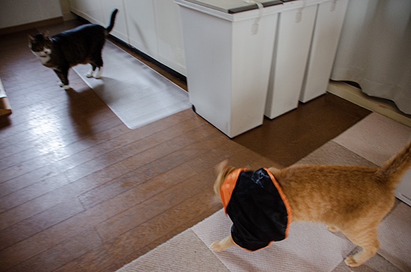 着せられるとなぜか台所に移動するのが毎年の流れ…