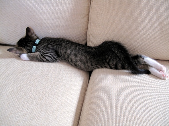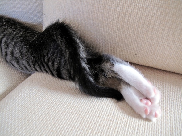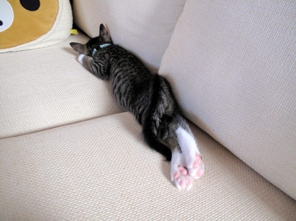 よく見たらソファーの形に沿って体が谷折になってますがwww