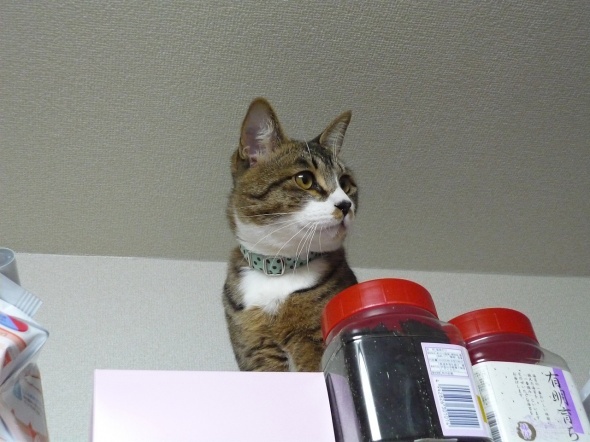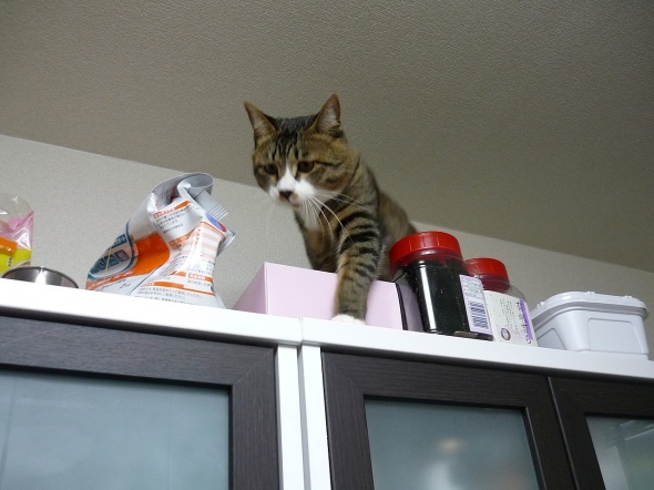 どうにかして、冷蔵庫に登ったらしい半蔵