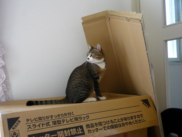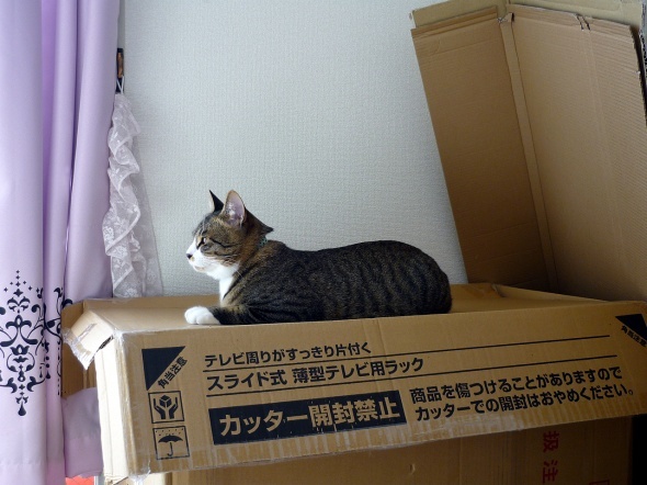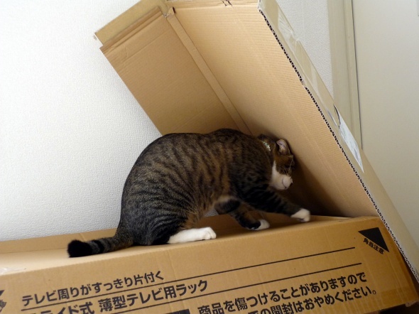 半蔵がダンボールを掘って遊んでいます