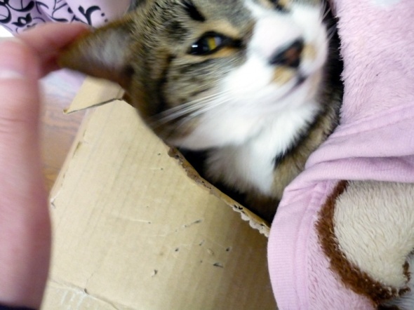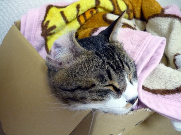 「うーんうーん(←自分で戻そうと耳をぴくぴくさせている)」