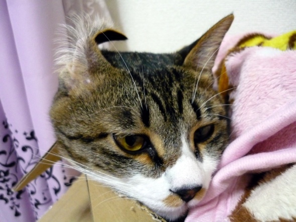 寝相が悪くて耳がひっくり返ってる(ノ∀`)