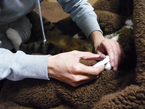 爪切りの時は、いつもこの何とも言えない表情をしています