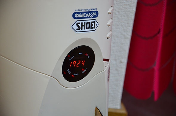 この自動給餌機、少し揺すると何粒かカリカリが出てくる事があるのです