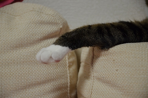 猫の手がにゅっと伸びていますよ