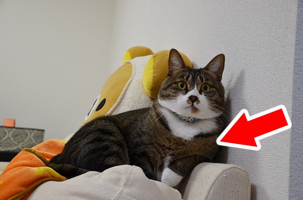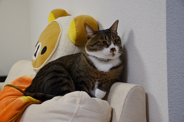 半蔵がいっちょまえに肘掛を使っています