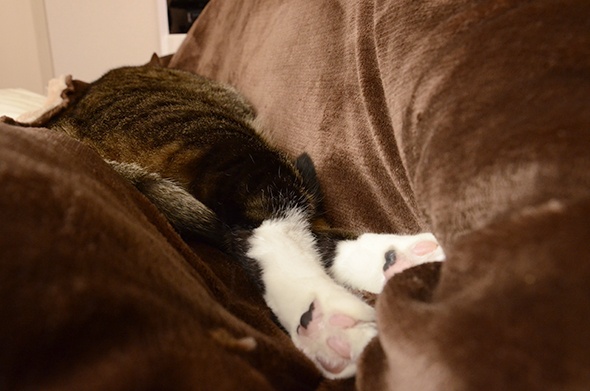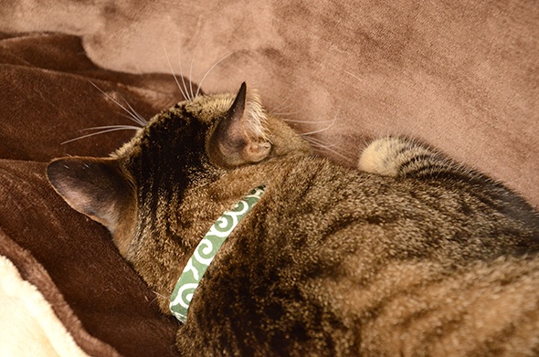 足をピンとのばしてお昼寝中の半蔵