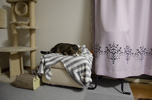こないだ捨てたソファーのカウチの所は半蔵のベッドとして活躍しています