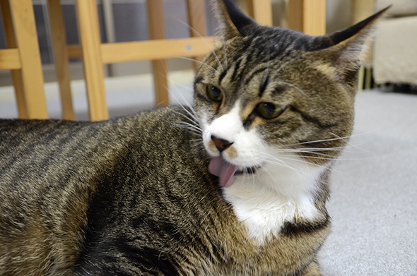 んで、カラーを外したら少し元気になったものの、速攻でアゴを掻きだしたので