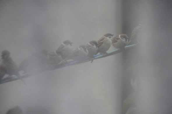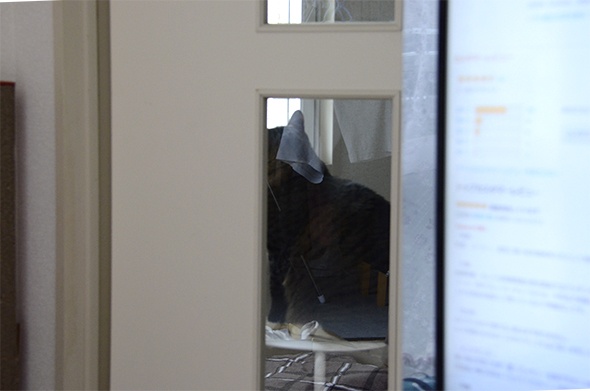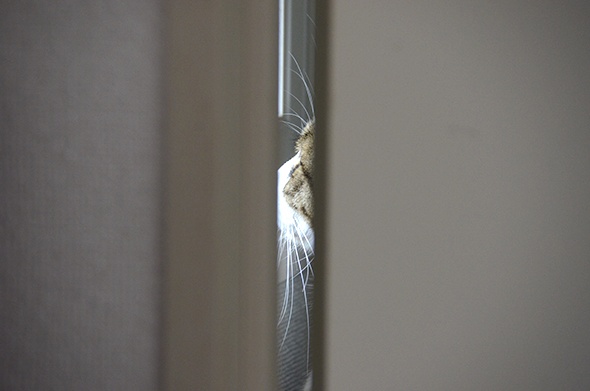 音を立てるとすぐ逃げてしまうので、カーテン越しの画像です(;´Д`)