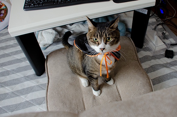 着せられるとなぜか台所に移動するのが毎年の流れ…